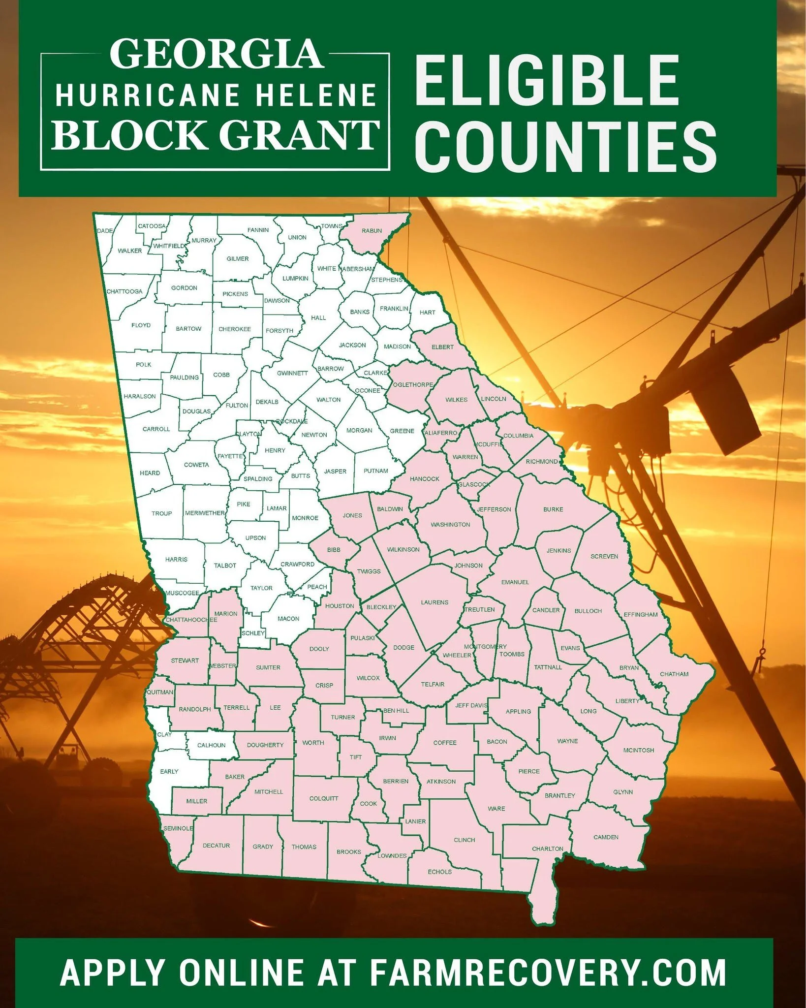 In September 2025, Georgia Agriculture Commissioner Tyler Harper announced that Georgia would receive $531,236,000 in federal relief through the Hurricane Helene Block Grant.